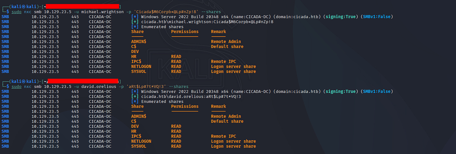 SMB 10.129.23.5 445 CICADA-DC Share Permissions Remark