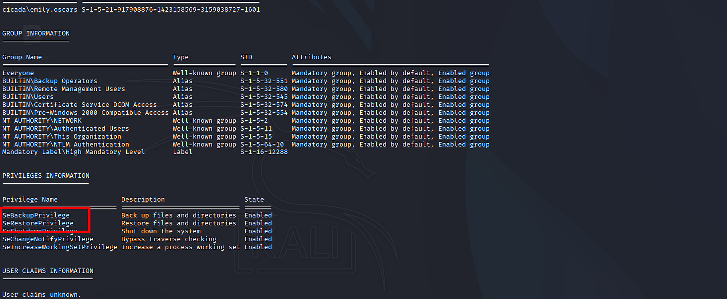 *Evil-WinRM* PS C:\Users\emily.oscars.CICADA>