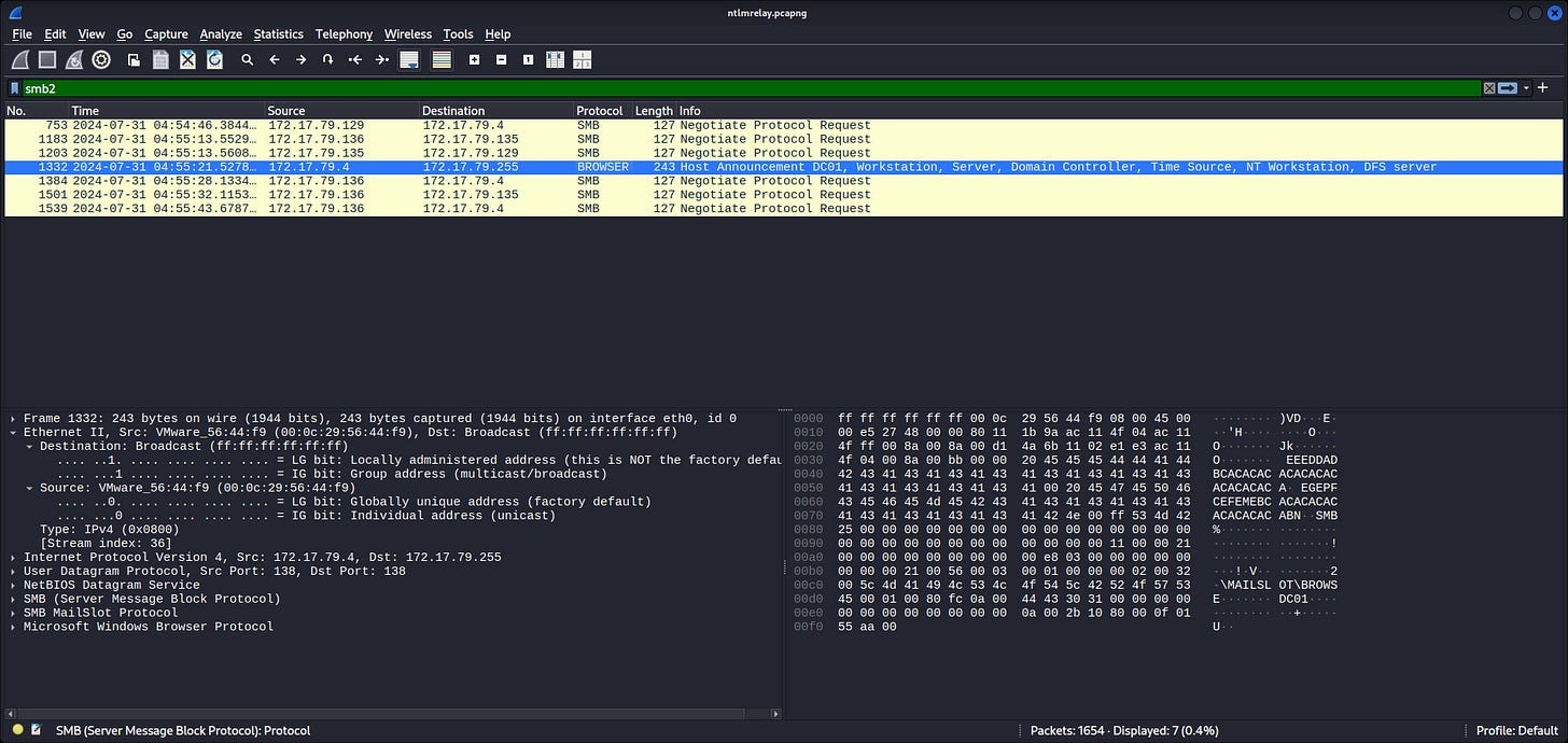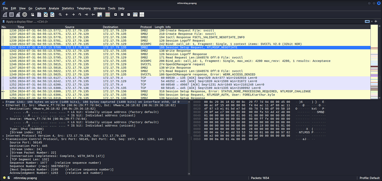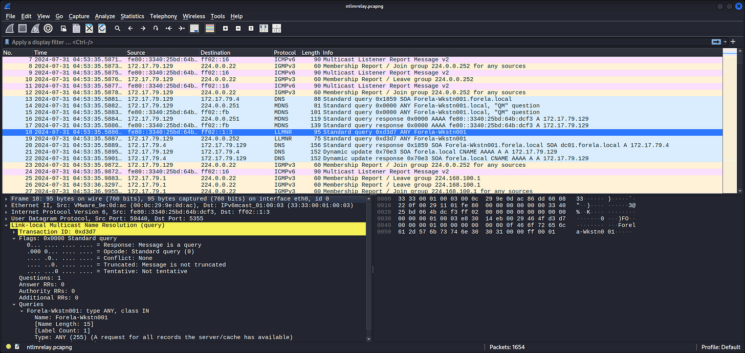 Investigate NTLM Relay attack, the attack starts by network poisoning on LLMNR response when a victim has a typo in the host in shares path. DFIR on given PCAP and Windows Security Log.