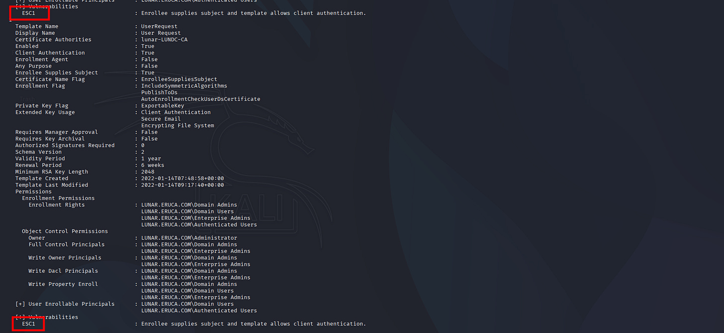 [*] SAN DNS Host Name: ‘LUNDC.lunar.eruca.com’